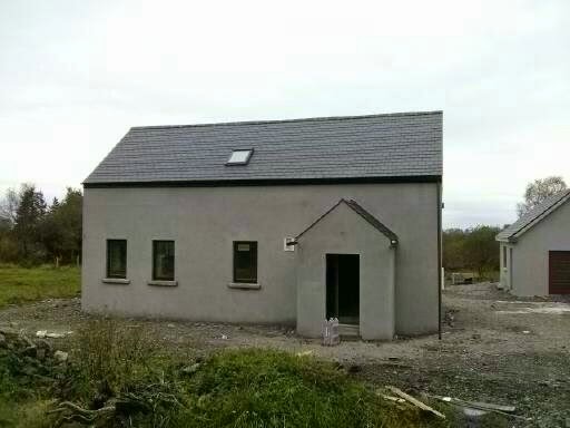 And then I came home from the parents last Thursday evening. I was supposed to be in Shannon by 6.30 but that's when the flight took off. It was delayed for an hour and a half, our intended plane having been struck by lightning on the tarmac in Bristol (not encouraging, not to be dwelt upon). Frustration. But never mind! It was still light enough to visit the site. All those photos hadn't prepared me for the shock of a three-dimensional house. So long looking at 2D plans, and here it was.